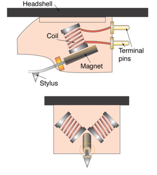 Nel caso degli MM o magnete mobile, il cantilever seguendo le ondulazioni del solco mette in movimento i magneti che ad esso sono ancorati, di fronte ai quali ci sono le bobine che invece sono fissate all’interno del corpo testina.