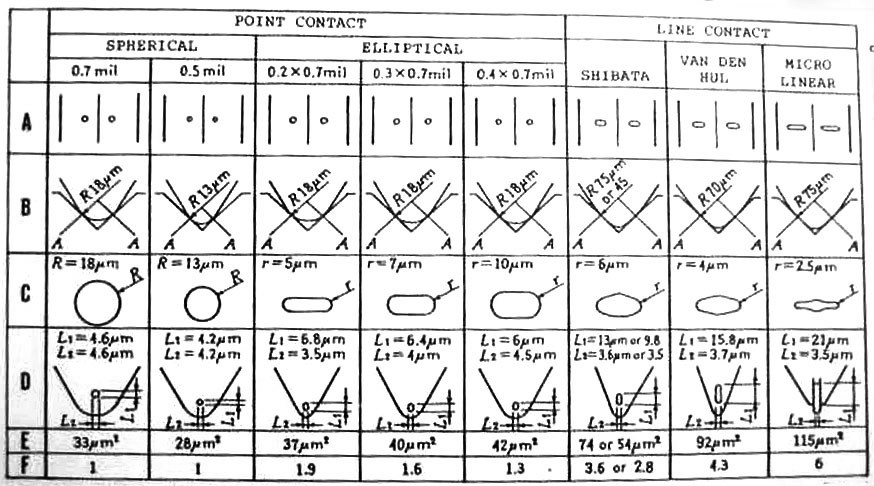 Con il passare degli anni le forme degli stili sono diventate via via più raffinate, incrementando il rapporto dimensionale tra i due assi dell’ellisse. Quindi aumentando sempre più l’area di contatto ed estendendola verso il fondo del solco, in modo da rendere più efficace l’estrazione delle informazioni, in particolare alle frequenze medie e alte. In seguito si è cercato di avvicinare per quanto possibile la forma del bulino incisore.