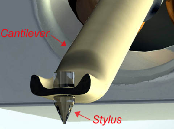 Il cantilever, ossia l’asticciola all’estremità della quale si trova la puntina, o stilo, segue la modulazione tracciata nel solco, che a sua volta è la rappresentazione analogica delle informazioni raccolte in fase di registrazione. Gli elementi ad esso collegati, magneti o bobine a seconda del principio di funzionamento, generano il segnale audio dal movimento che ne deriva.